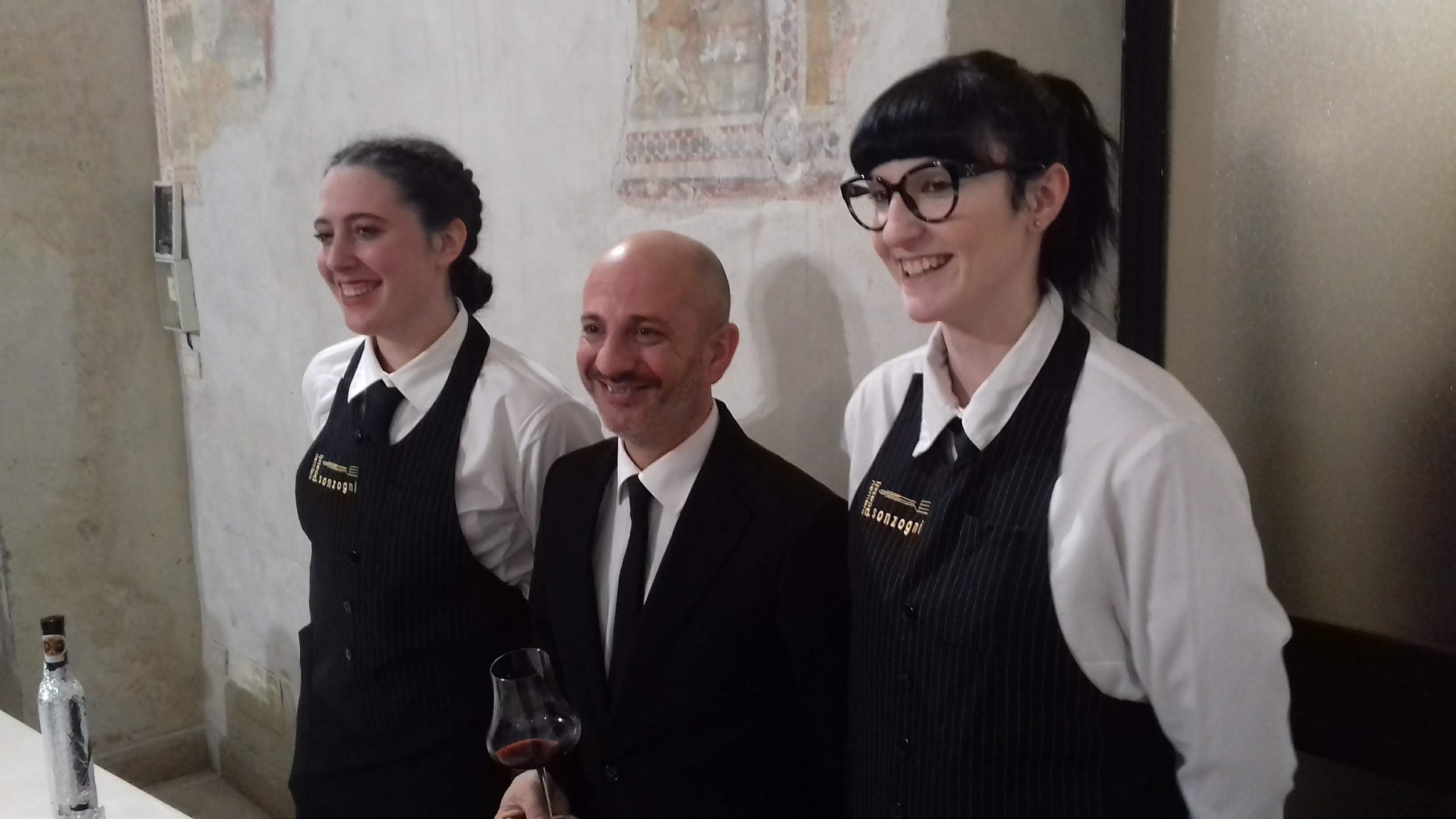Alcune immagini della presentazione ufficiale del bicchiere di degustazione del moscato di Scanzo, con le ragazze e i ragazzi dell’indirizzo Sala-bar, con il Prof. Mondano