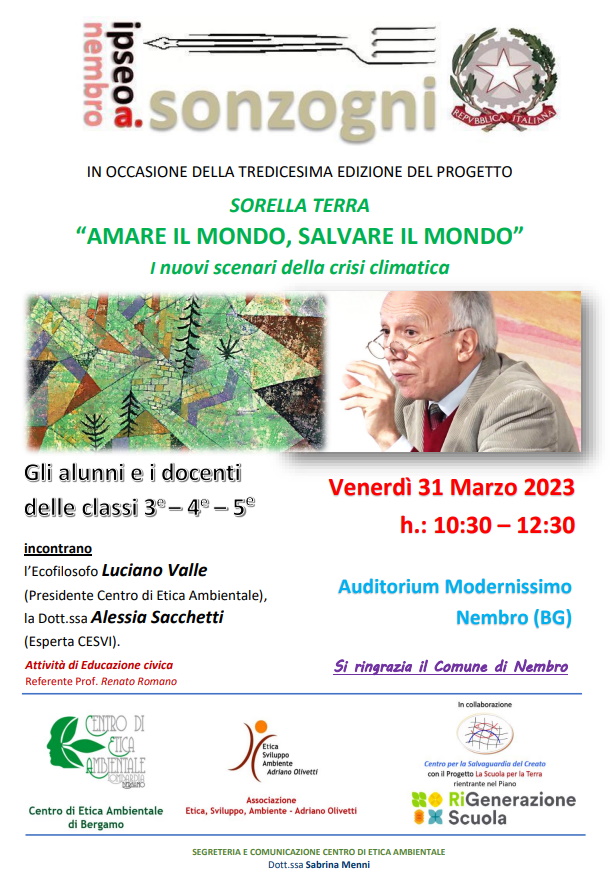 13^ Edizione “SORELLA TERRA” – “AMARE IL MONDO, SALVARE IL MONDO” – il 31 marzo 2023 all’Auditorium Modernissimo di Nembro